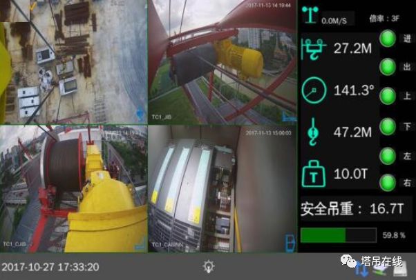 塔机吊钩可视化安全监控系统是一款集视频辅助、力及力矩限制、塔机黑匣子为一体的高科技产品,系统将多路网络高清摄像头以及各种传感器相结合,实现吊钩位置智能追踪、自动对焦,全方位无死角实时拍摄,并借助传感器技术对力、力矩、作业位置主动进行安全干预,有限杜绝盲吊、隔物吊,防止力及力矩超载等危险隐患。另系统集成大容量存储器对塔机工作状态实时记录,方便事故追本溯源。